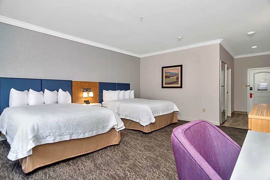 37-inch HDTV, free WiFi, sofa bed, coffeemaker Unwind in this convenient studio suite with two queen clean and fresh Hampton beds® and a handy sofa bed. Relax and watch the 37-inch HDTV or stay on top of business at the desk. Keep up-to-date with free WiFi. This room also has a coffeemaker. The bathroom includes a shower with a curved rod that allows for more space and light.